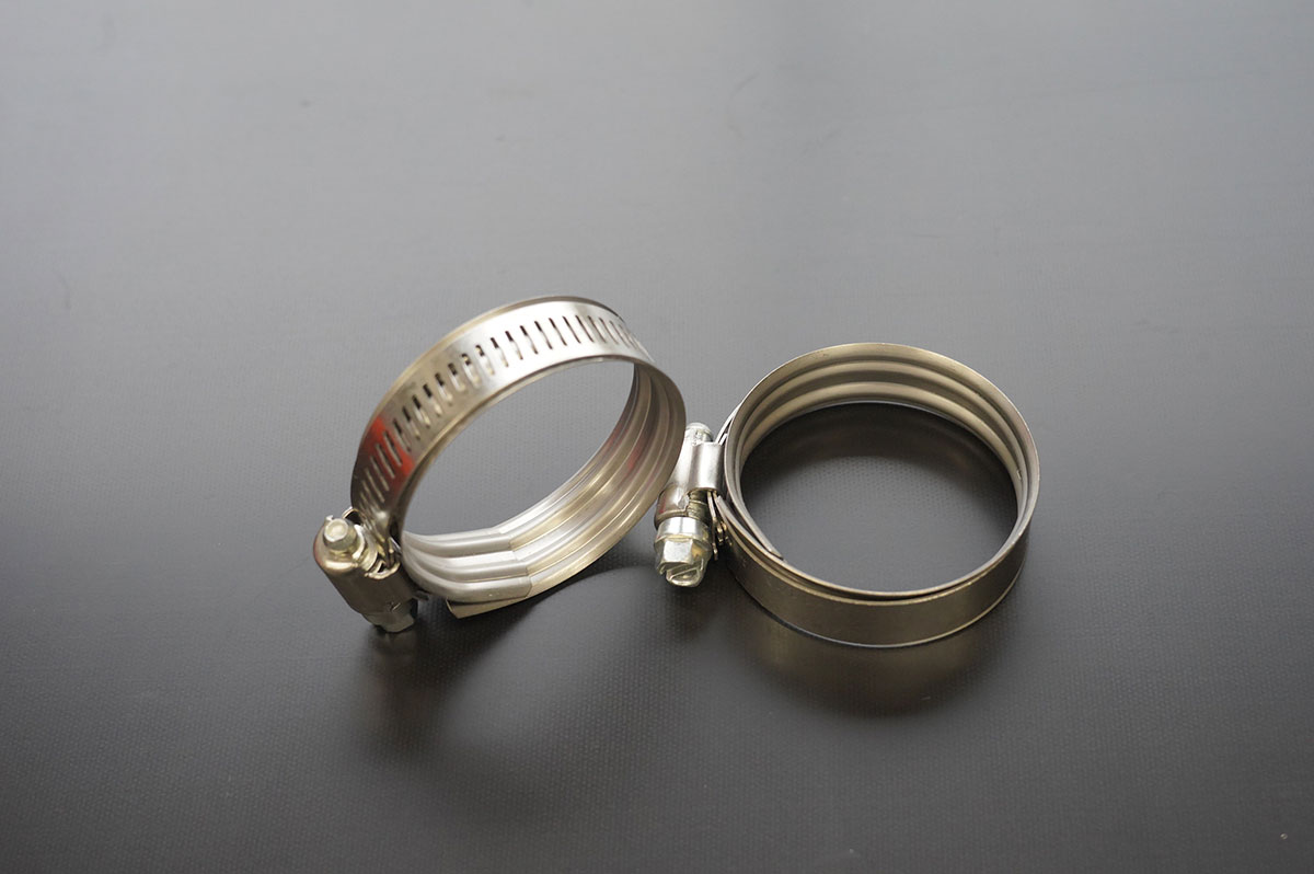 ホースを固定するホースバンドにはデュアルビード(2重2層)構造を採用し、ホースを均一に締め付ける事が可能、抜けにくく密着性が上がり