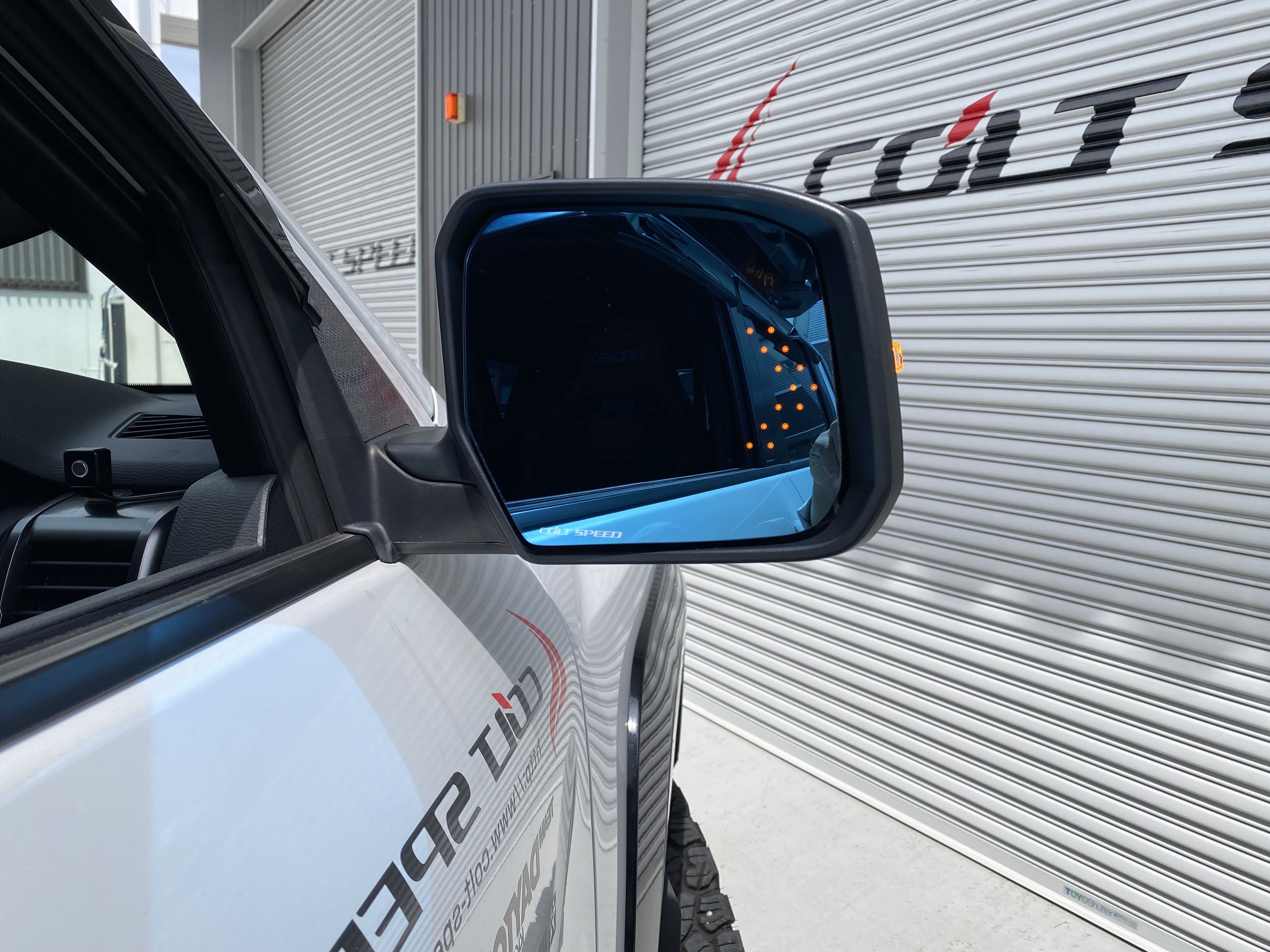 車両に装備されている後方車両検知警報システムBSW及びヒーテッドミラー機能はそのままに、ウインカーと連動させたシグナル表示を追加。