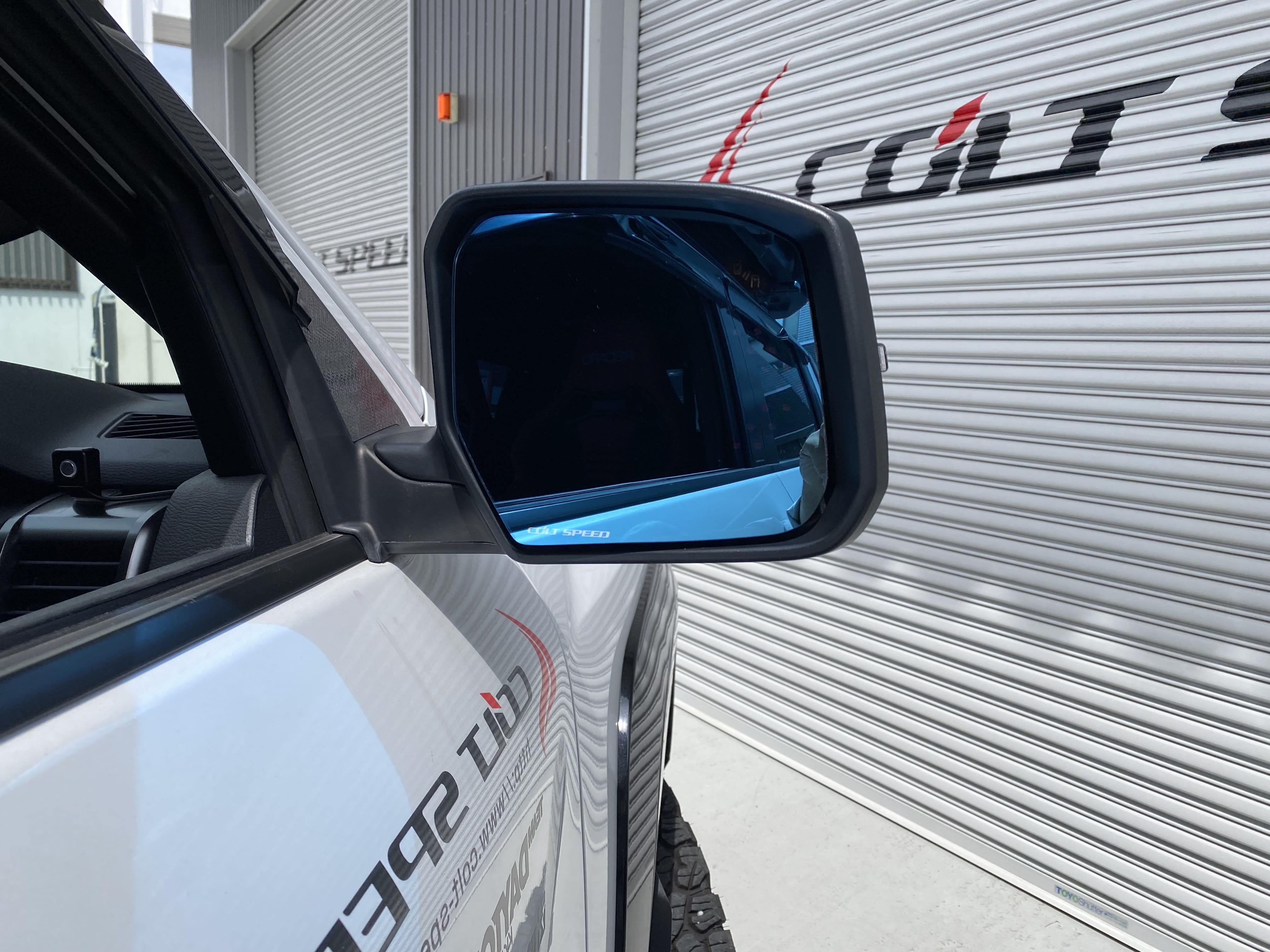 ブルーコーティングを施したミラーは、後方車両のヘッドライト等の防眩に役立ち、なおかつ純正比で約10%ワイドな曲面率を採用している為、死角を減少させ安全性を高めています。